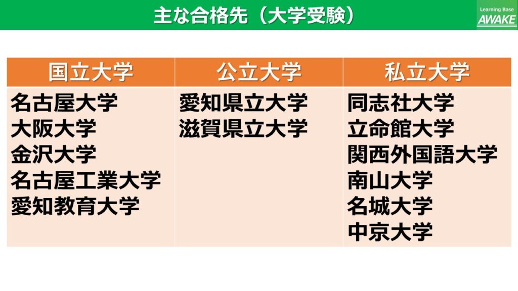 2025年05月20日 スタッフブログ 合格実績_豊明×塾×高校生×中学生 合格実績の最新版(2026年3月現在)となります。 目次合格実績(大学受験)合格実績(高校受験) 合格実績(大学受験) 合格実績(高校受験) 記事一覧に戻る
